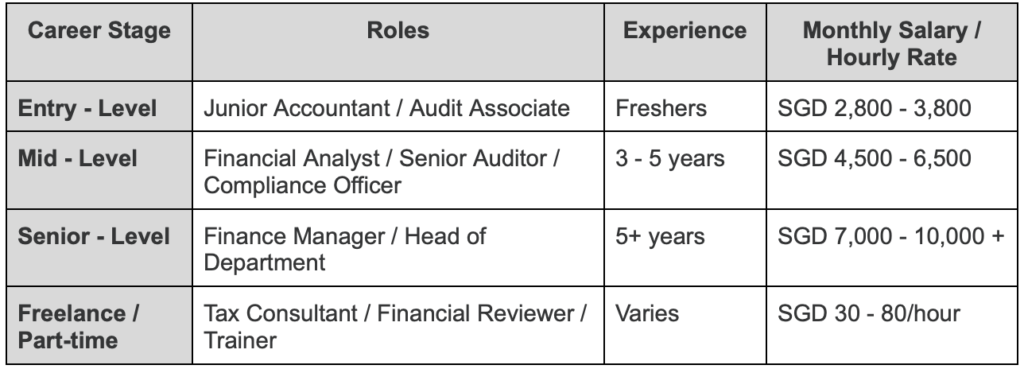 ACCA professionals in Singapore have a wide range of career opportunities, with salaries that grow steadily with experience. These are the latest ACCA jobs in Singapore 2025: